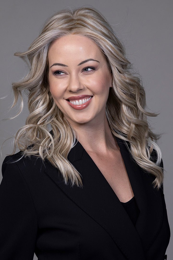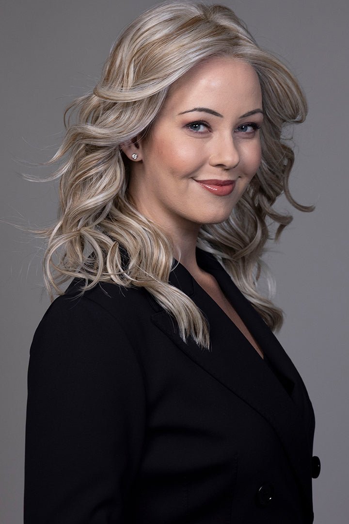 Elle by Belle Tress is a long, layered style with soft waves that flow effortlessly for a refined yet modern look. The face-framing layers create movement and versatility, making it easy to style for both professional and casual settings.