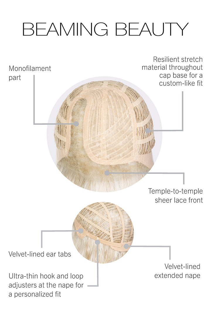 | Approx Lengths: | Front: 7.7" | Crown: 8.5" | Nape: 5.25" | Side: 9.5" | Back: 8" |