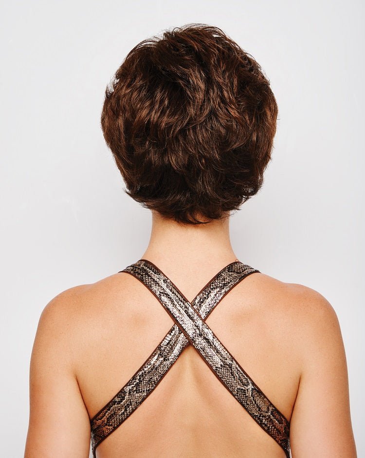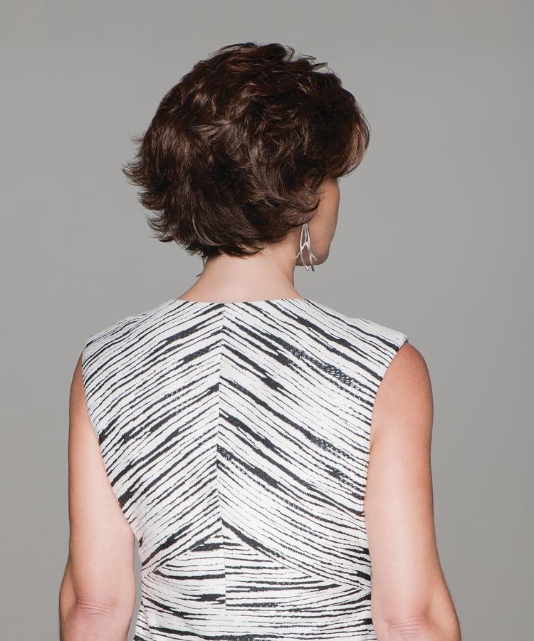A fresh take on the classic fluff-back silhouette, this short, barely waved cut includes a hand-knotted top and sheer lace front for natural looking, off-the-face styling.