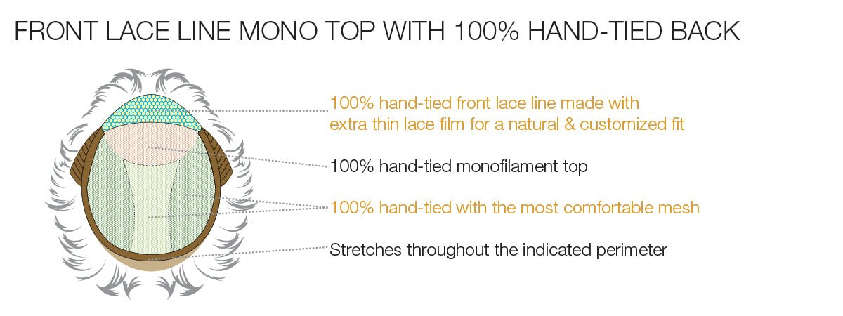 The lace front hairline creates a seamless, realistic look and allows for off-the-face styling. A monofilament top offers the appearance of natural hair growth at the part and lets you change the parting direction with ease. Designed with a hand-tied back, Nicole moves naturally with every step while providing lightweight comfort for all-day wear.