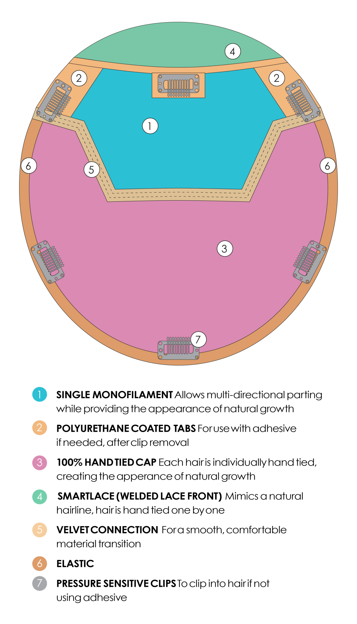 Crafted with Jon Renau’s signature SmartLace™ front, a single monofilament top, and a hand-tied cap, this topper delivers a lightweight, breathable feel with natural hair movement and parting flexibility. The polyurethane tape front and sides allow the clips to be removed for adhesive application—perfect for a more secure, customized fit.