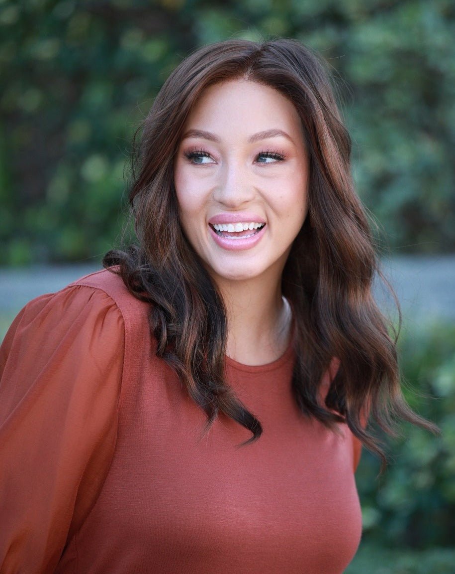 Dark and elegant roots melt naturally into radiant, fiery ends |