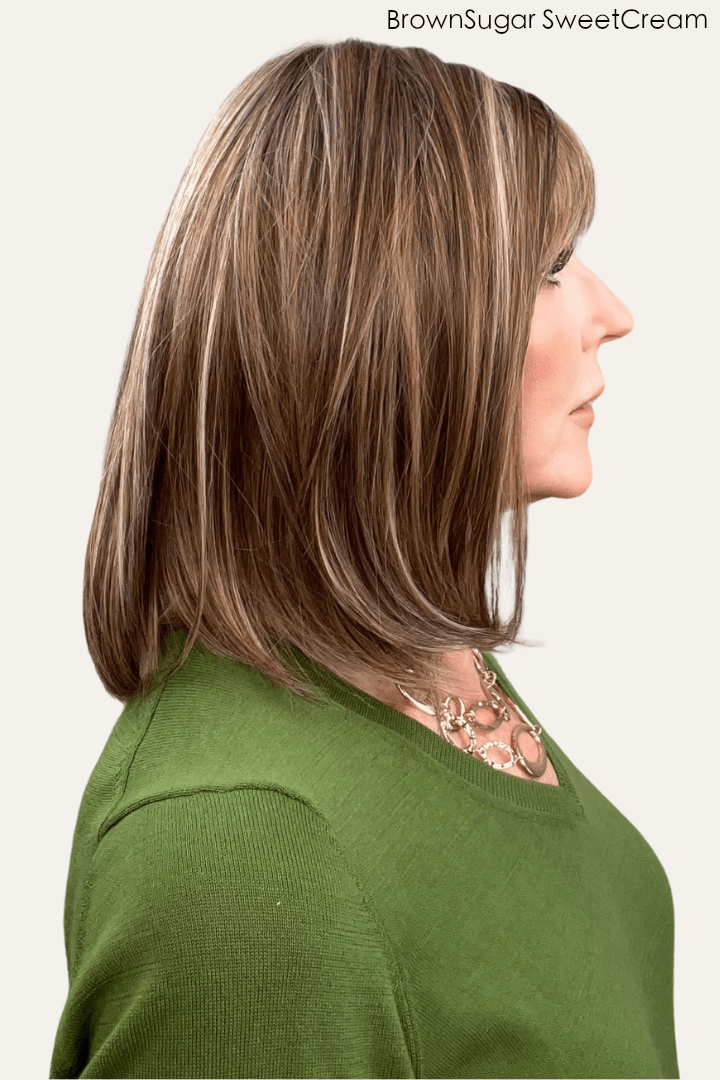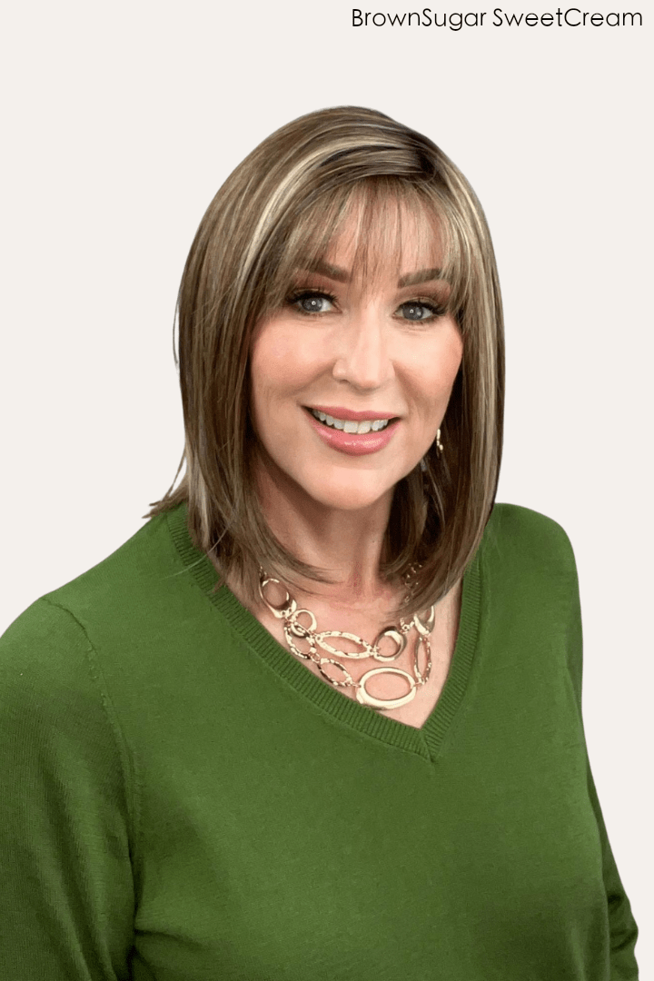 Juliette by PUSH features a beautiful fringe and face-framing layers that fall just below the shoulder. She is designed with a full monofilament top and an extended ear-to-ear lace front hairline, allowing versatility in styling for a youthful, romantic appearance. Juliette's heat-friendly fibers allow you to use heat (up to 270 degrees) for styling.