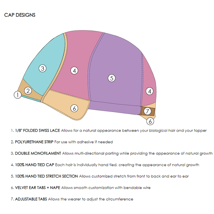 | Length | Bang: 5.25" | Crown: 12.5" | Nape: 12.5" | Side: 14.5" |