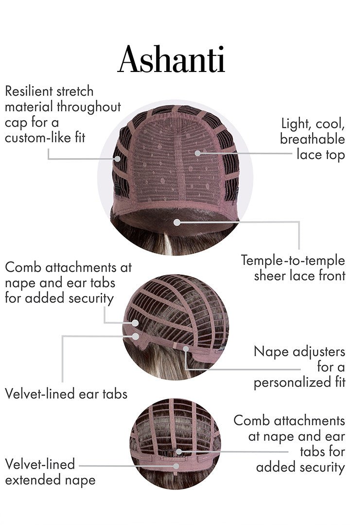 Crafted with a lace top and Temple-to-Temple Lace Front, Ashanti gives you a natural-looking hairline and breathable comfort all day long. Made with Tru2Life® heat-friendly synthetic fibers, you can style her with heat tools to match your mood — sleek or tousled, the choice is yours.