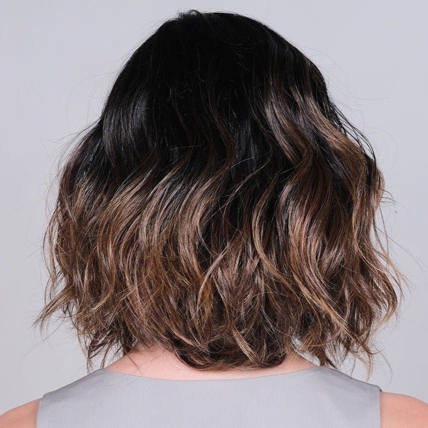 The Caliente Wig, a shoulder length wavy lace front wig is the latest addition to the Belle Tress Café Collection. A deconstructed wave meets the modern A-line bob, to create this heat friendly synthetic medium length wig. The special features of this A-line bob hair piece include a full lace front for a natural hairline and a left side monofilament part, using a unique knotting method for off-the-face styling. Slightly extended lengths toward the front and a shorter blunt cut in the back creates an edgy attitude.