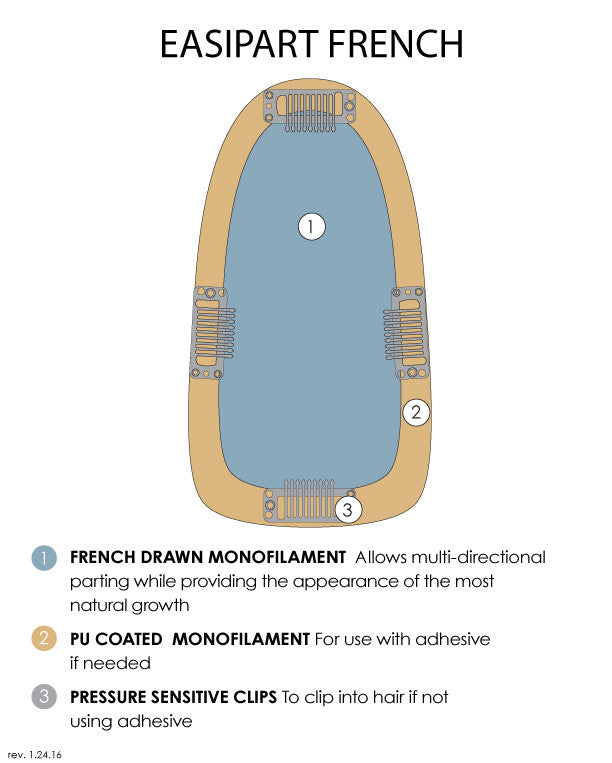 Ideal for women with thinning hair or early to mid-stage hair loss at the part or crown, the easiPart French is worn directly along the part line to enhance fullness where you need it most.