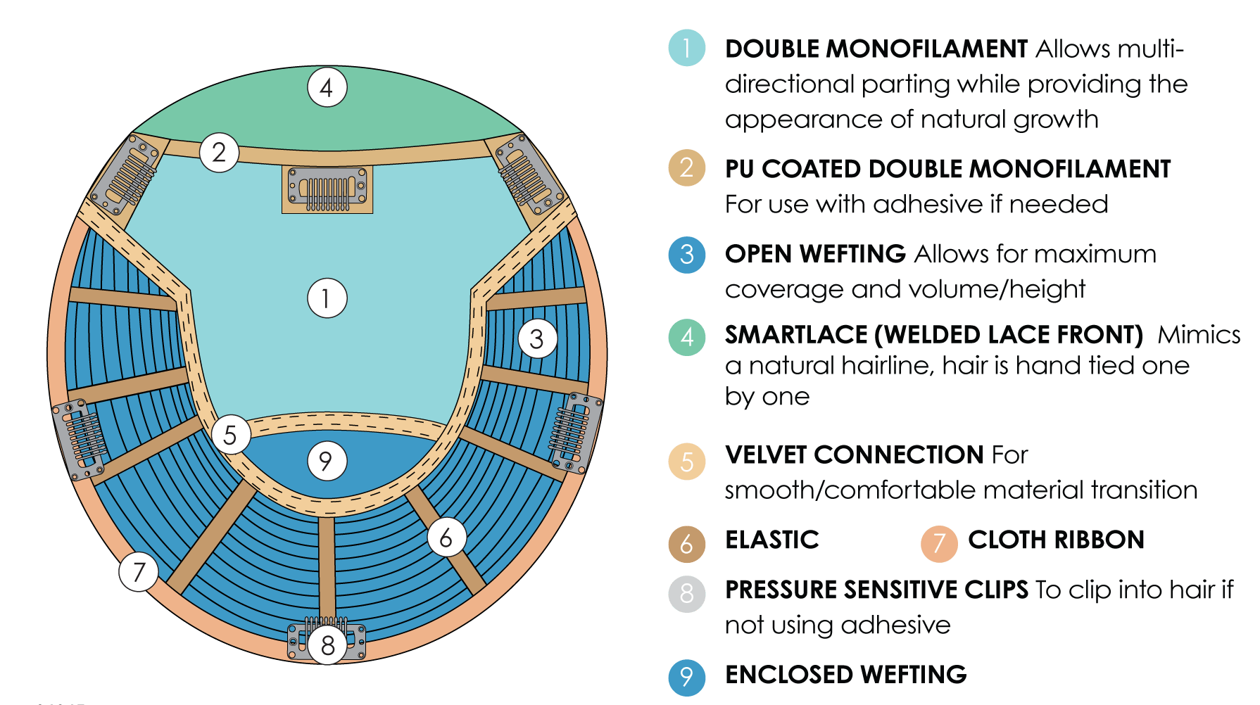 One-piece hair topper that blends our signature SmartLace™ lace front with the lightweight comfort of a crown topper. With 6 strategically placed clips, the 9-inch base clips in comfortably and securely. Designed for the advanced stage of hair loss, this lace front topper also features 3 polyurethane tabs to facilitate the use of adhesive if needed. Available in 12" and 18" lengths.