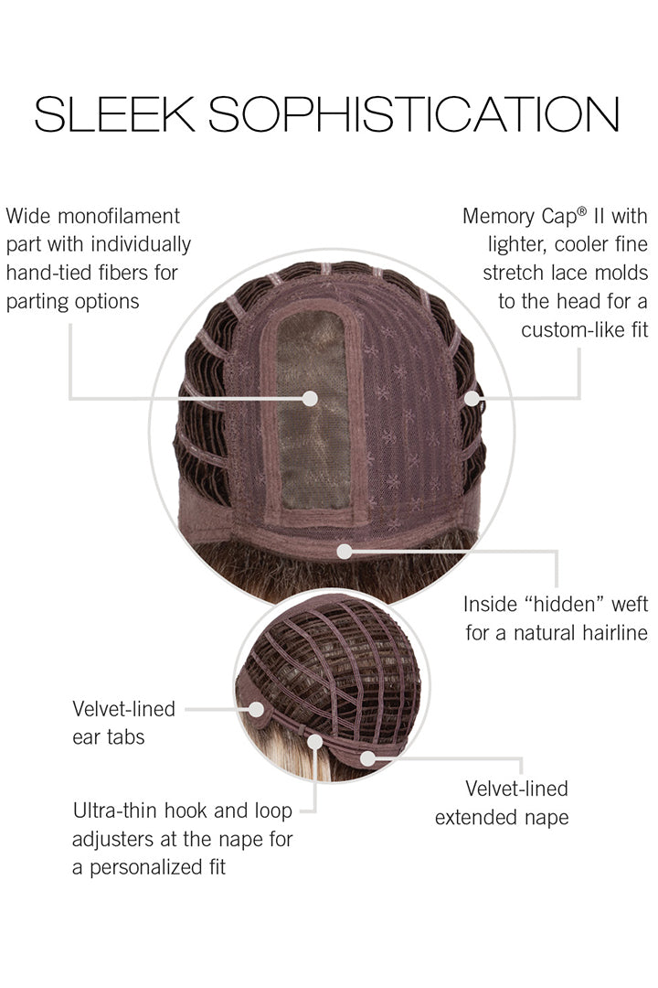 Crafted with Tru2Life® heat-friendly synthetic fibers, Sleek Sophistication allows you to smooth, shape, or add subtle movement using low-heat tools. The Memory Cap® II construction is lightweight, breathable, and designed to gently mold to your head for a secure, comfortable fit. Simple by design yet striking in effect, this ready-to-wear style lets you bring the drama—your way.
