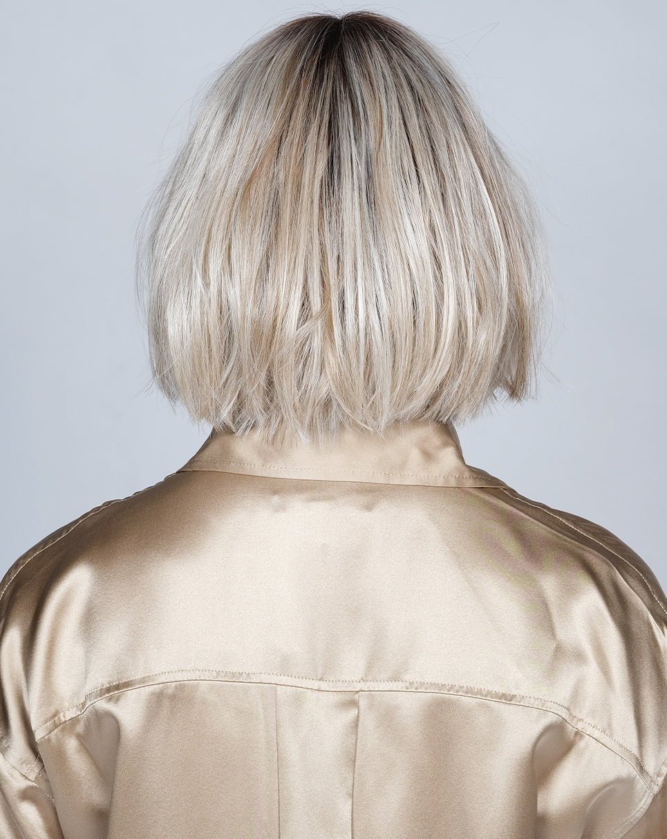 This color is a blend of sandy blonde, ash blonde, and light blonde, with a gradient color from the roots to the tips but has an overall feeling of being a soft beige tone. The highlights and lowlights of color cream together provide dimension but not a lot of contrast.