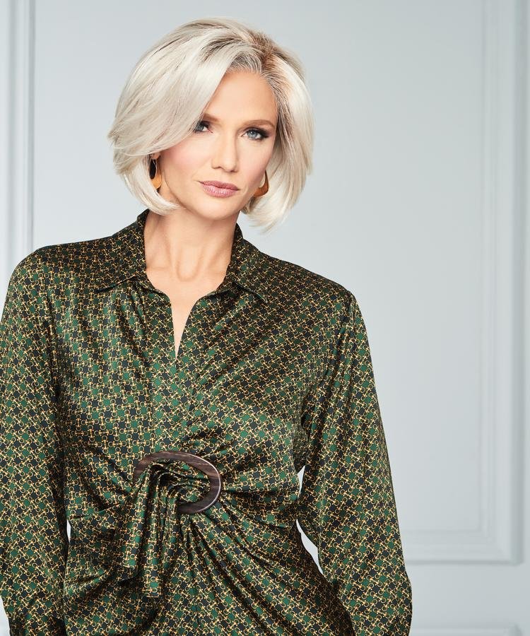 This softly waved chin length cut gives the classic bob a new twist. With a sheer lace front and hand-knotted top for varied styling options, the layered texture throughout allows for natural movement, and the beautifully tapered lengths make this a light, timeless classic.