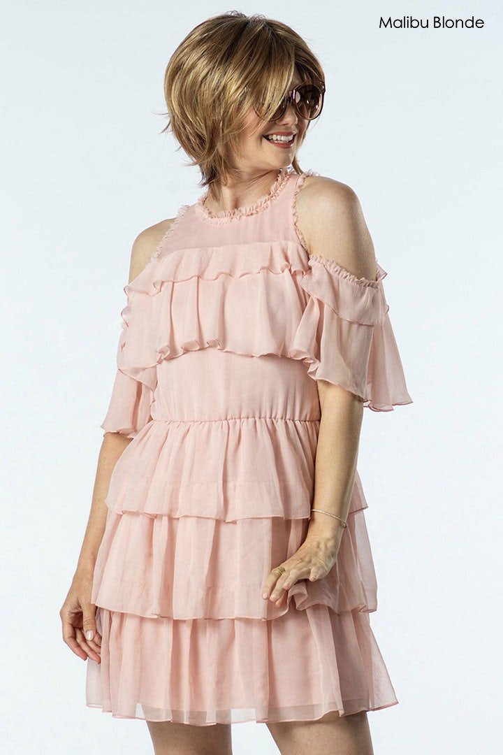 Karis is a modified Bob with a side fringe bang and shaggy tousled layers in the back with a long tapered nape. This carefree style has elongated sides that accentuate your cheekbones. On a Ready-to-Wear LaceFront, MonoLux is a quintessential look that is good on every face shape.