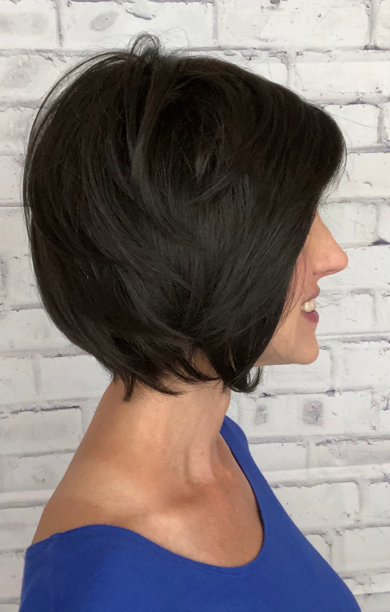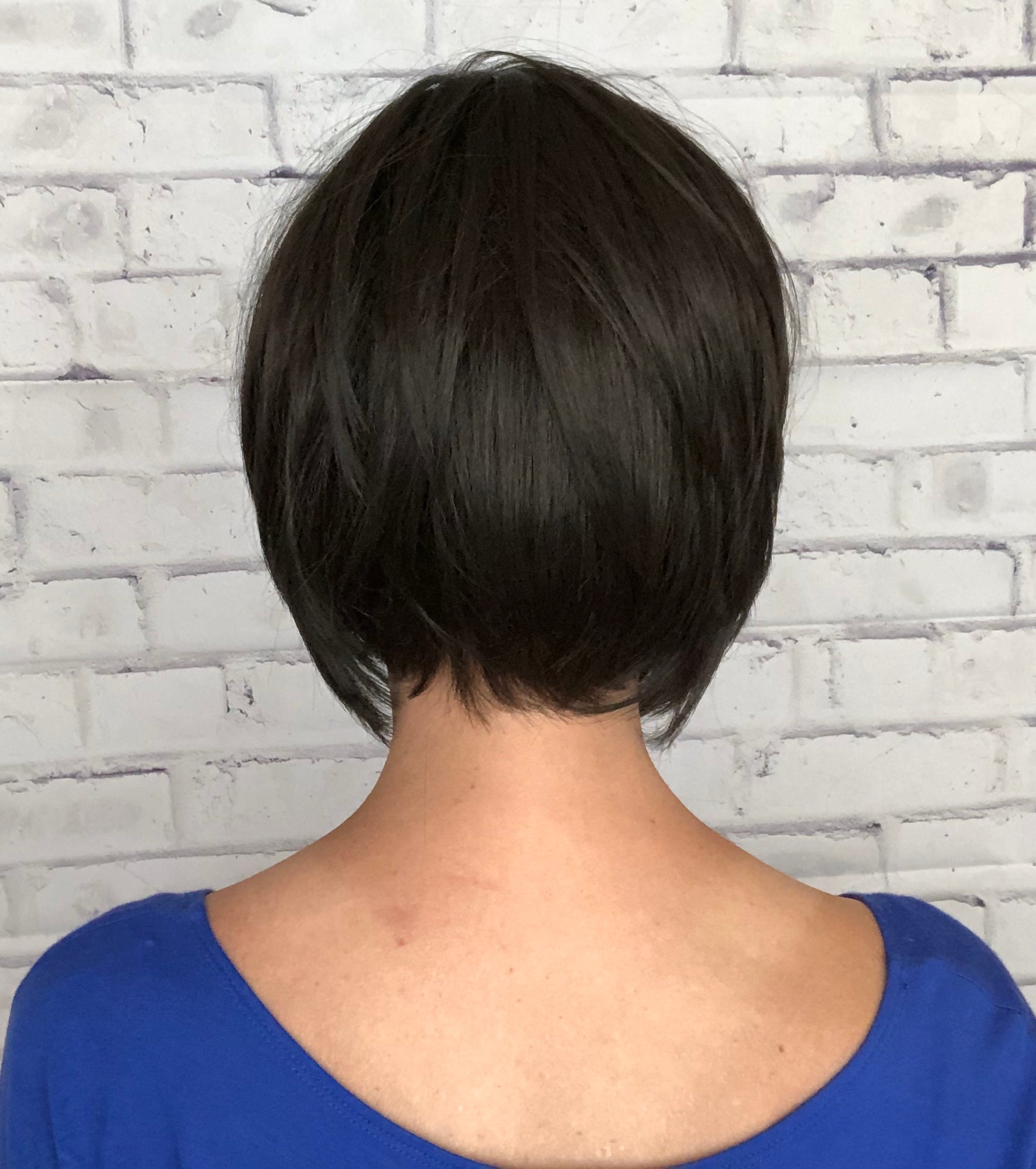 Pure White w/ 5% Med Brown Front, Grey w/ 30% Med Brown Middle, Dk Brown w/ 65% Grey Nape |