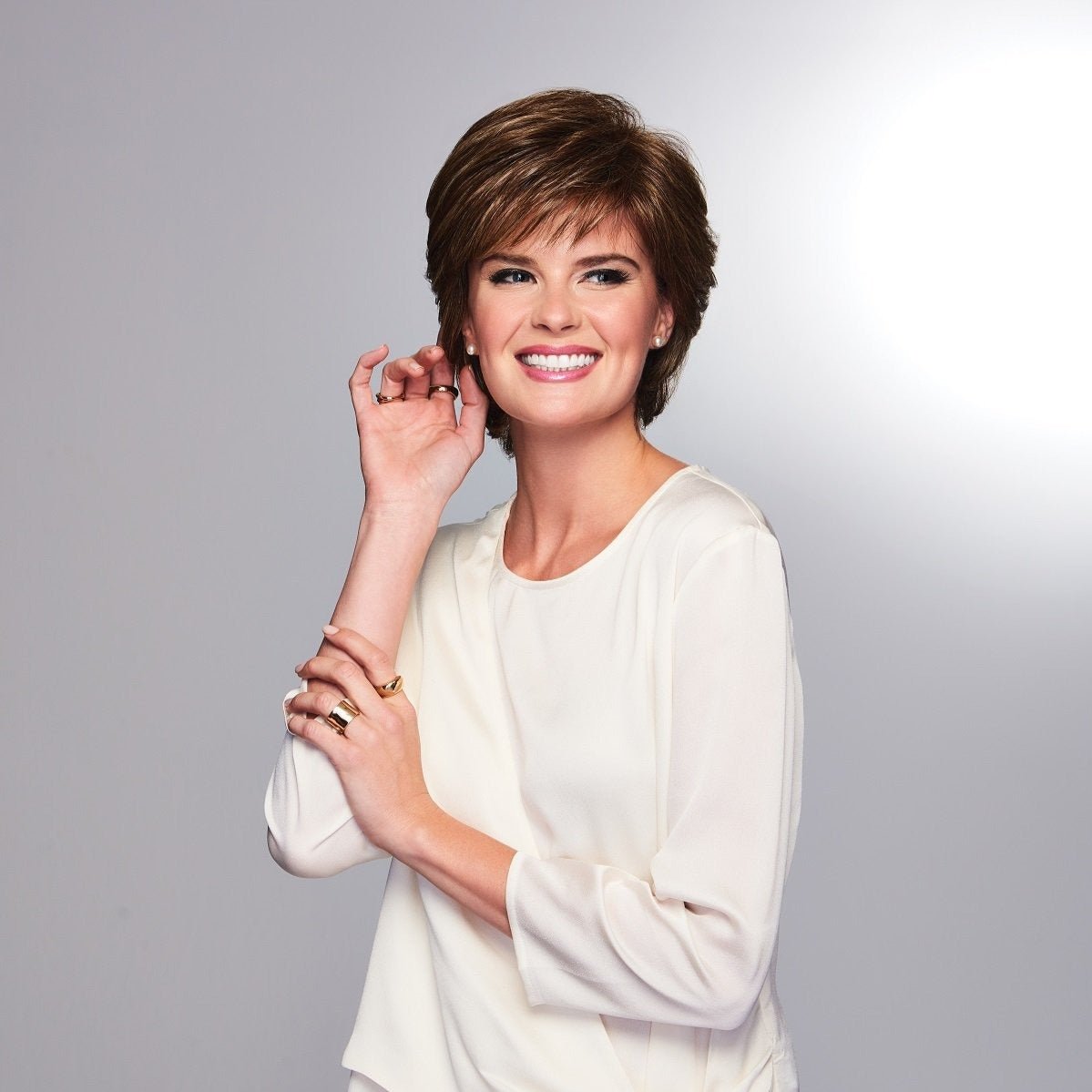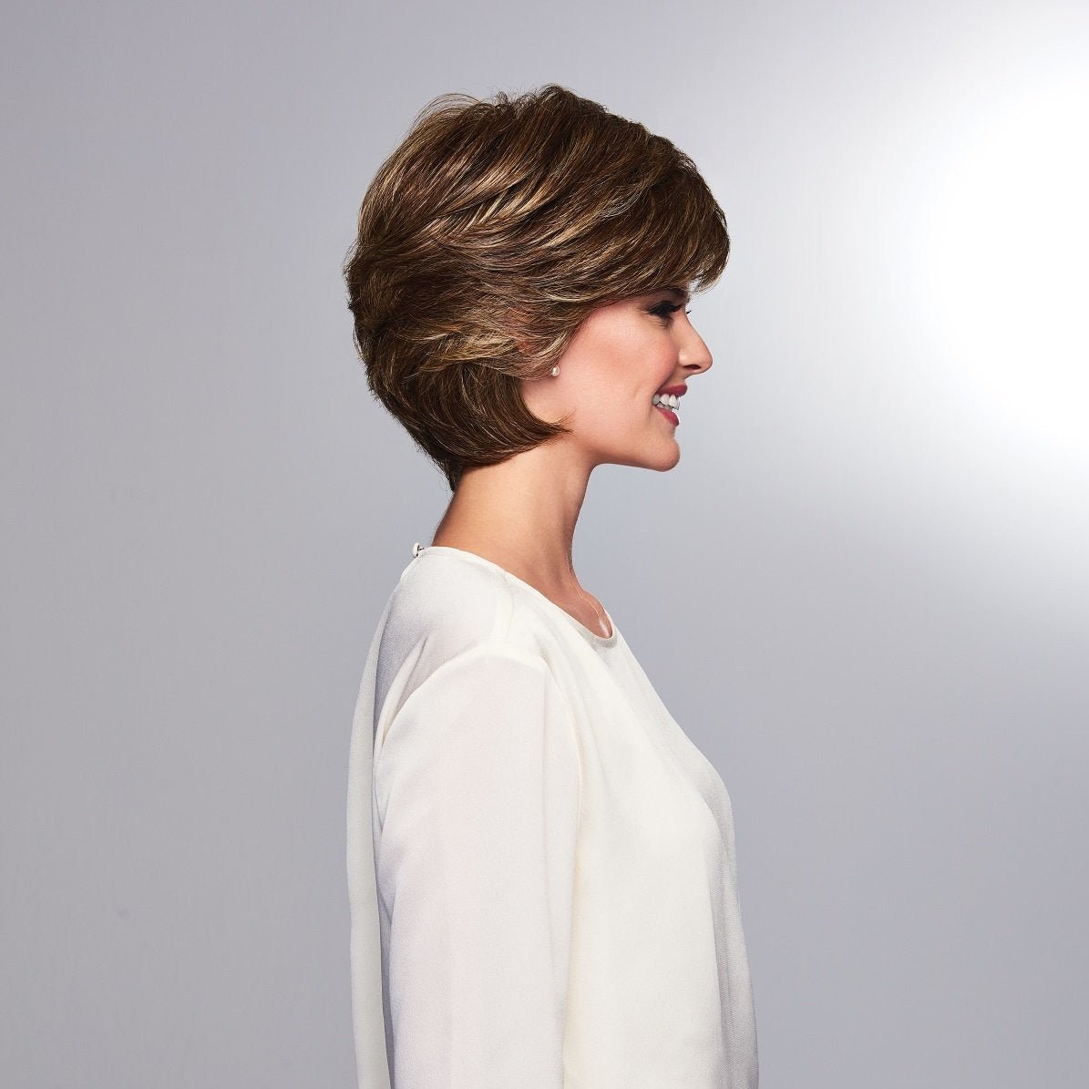 The Joy Wig by Gabor is a modern take on the classic cropped shag, featuring loose layers, tapered ends, and a sculpted nape for a flattering silhouette. Designed with a soft eyelash bang and face-framing sides, this short wig exudes style and sophistication. Lightweight and easy to wear, Joy requires minimal styling—just a simple shake and a touch of finger-combing to achieve its effortlessly chic shape. Perfect for everyday wear, this wash-and-go style delivers instant polish and comfort.
