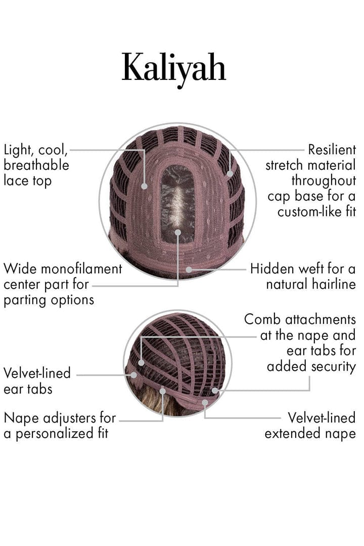 Built for secure, all-day comfort, Kaliyah features a light, cool, breathable lace top and resilient stretch material throughout the cap base, providing a custom-like fit that molds comfortably to your head. Velvet-lined ear tabs, a velvet-lined extended nape, and adjustable nape tabs enhance comfort and personalization. Comb attachments at the ear tabs and nape add extra security for confident wear.