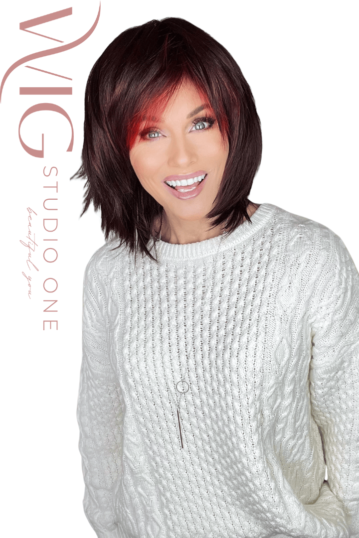 The Rainbow Wig by Ellen Wille from the Perucci Collection is a lively, shoulder-length style that perfectly blends playful sophistication with everyday wearability. Soft, layered movement and a feathered fringe add dimension and bounce, while high-quality synthetic fibers ensure a natural look with minimal upkeep.
