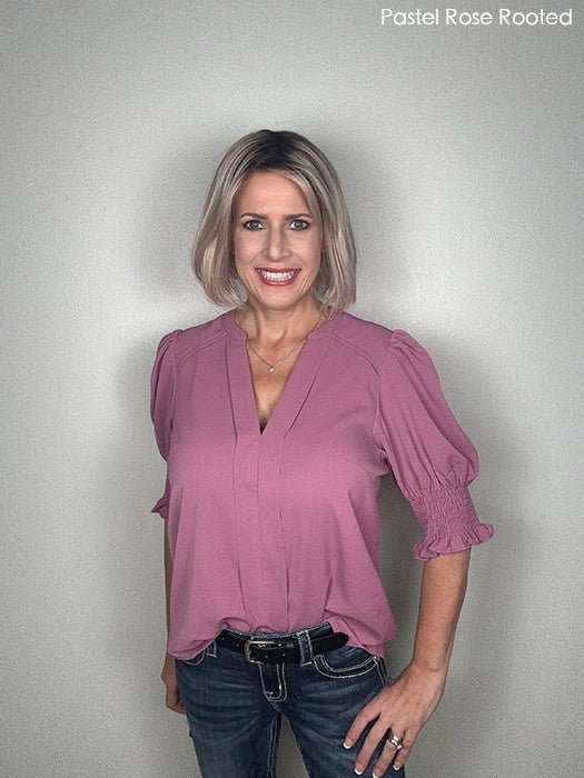 Vivi is a playful yet polished medium length wig from the Perucci Collection, featuring side-swept bangs and soft layered wig styling that flatters every face shape. Made from heat friendly synthetic wig fibers, it offers versatile styling with a natural look and feel. The lace front mono part creates a realistic hairline and scalp appearance, while the lightweight, wefted cap provides breathable comfort for all-day wear.